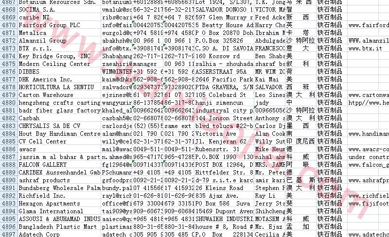 鐵石制品采購(gòu)商名單數(shù)據(jù)為Excel格式,信息可任意修改、復(fù)制、打印、導(dǎo)出及導(dǎo)入到傳真、郵件群發(fā)等軟件中,無(wú)任何限制。