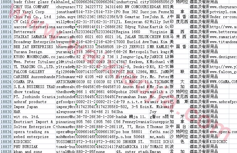 器皿及餐廚用品采購商名單數(shù)據(jù)為Excel格式,信息可任意修改、復(fù)制、打印、導(dǎo)出及導(dǎo)入到傳真、郵件群發(fā)等軟件中,無任何限制。