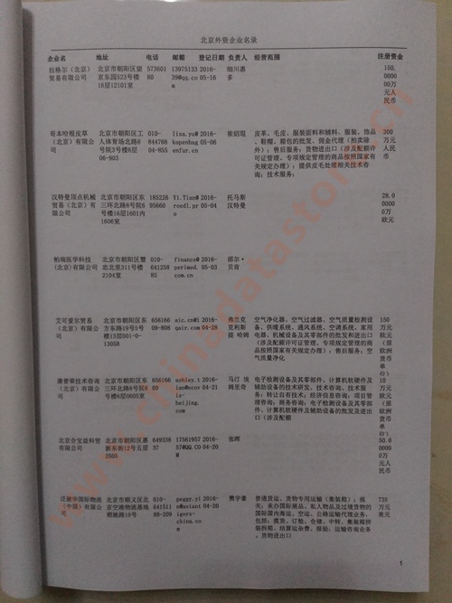 最新北京外資企業(yè)黃頁數(shù)據(jù)涵蓋了北京外商獨(dú)資企業(yè)、中外合資經(jīng)營企業(yè)以及港、澳、臺資企業(yè),包括北京臺資日資企業(yè)黃頁等,北京外企名單具體內(nèi)容包括:企業(yè)名稱、地址、電話、傳真、郵箱、經(jīng)營范圍、注冊資金等信息;北京日企臺企黃頁里面的企業(yè)都一些中外合資的大企業(yè),這些公司經(jīng)濟(jì)實(shí)力都比較雄厚,出口產(chǎn)品也比較多,業(yè)務(wù)范圍都比較廣,跟他們開展業(yè)務(wù)往來都比較容易;有了北京外企黃頁開展業(yè)務(wù)也有了針對性,也省去了盲目去尋找客戶名單而浪費(fèi)的時(shí)間了,工作效率也會有很大的提高.歡迎需要的客戶及時(shí)聯(lián)系我們!