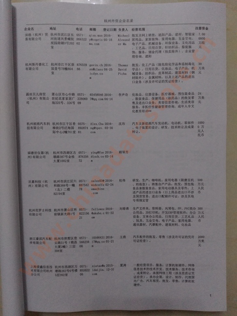 最新杭州外資企業(yè)黃頁涵蓋了杭州外商獨資企業(yè)、中外合資經(jīng)營企業(yè)以及港、澳、臺資企業(yè),包括杭州臺資日資企業(yè)黃頁,杭州外企黃頁具體內(nèi)容包括:企業(yè)名稱、地址、電話、傳真、郵箱、經(jīng)營范圍、注冊資金等信息;杭州外資企業(yè)黃頁里面的企業(yè)都一些中外合資的大企業(yè),這些公司經(jīng)濟實力都比較雄厚,出口產(chǎn)品也比較多,業(yè)務范圍都比較廣,跟他們開展業(yè)務往來都比較容易;有了杭州日企臺企黃頁開展業(yè)務也有了針對性,也省去了盲目去尋找客戶名單而浪費的時間了,工作效率也會有很大的提高.歡迎需要的客戶及時聯(lián)系我們!